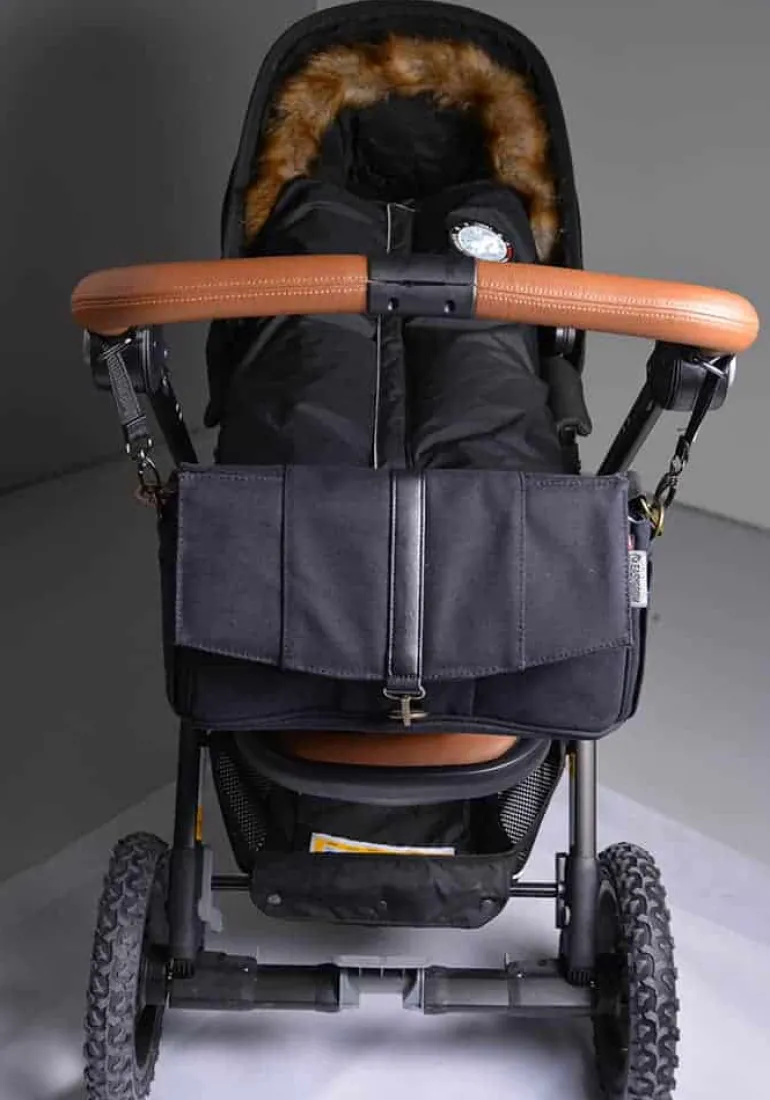 Vandafvisende yderstof i kraftig canvas tekstil. Mama Organizer Aarhus er en ny og praktisk taske til barnevognsstyret i kraftig canvas tekstil. Aarhus har et vandafvisende ydre, og praktisk inddeling på indersiden med justerbare rum, der kan rykkes rundt efter behov. På ydersiden findes to lommer i hver ende til flasker, samt 3 elastiklommer på fronten.