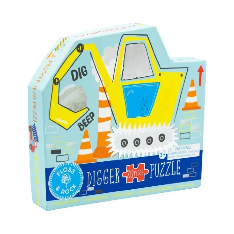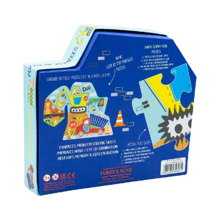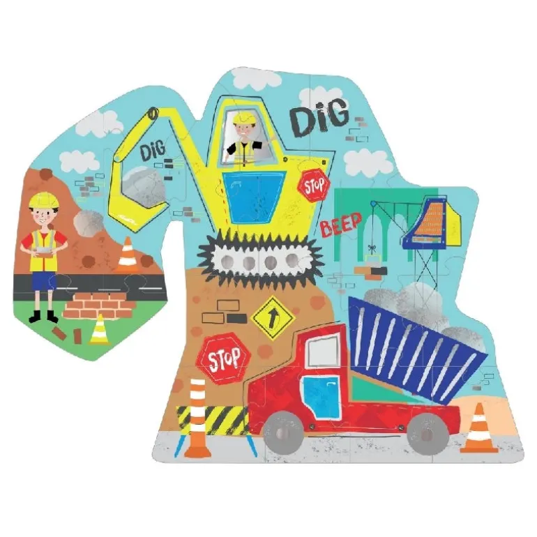 Bip bip! Gravemaskine-entusiaster vil elske dette puslespil, der viser en byggeplads med masser af lysende skilte, køretøjer med mere. Den silhuet formede æske indeholder 20 kraftige puslespilsbrikker. Det sjove puslespil stimulerer hånd/øje-koordination og udvikler hukommelse og koncentration.