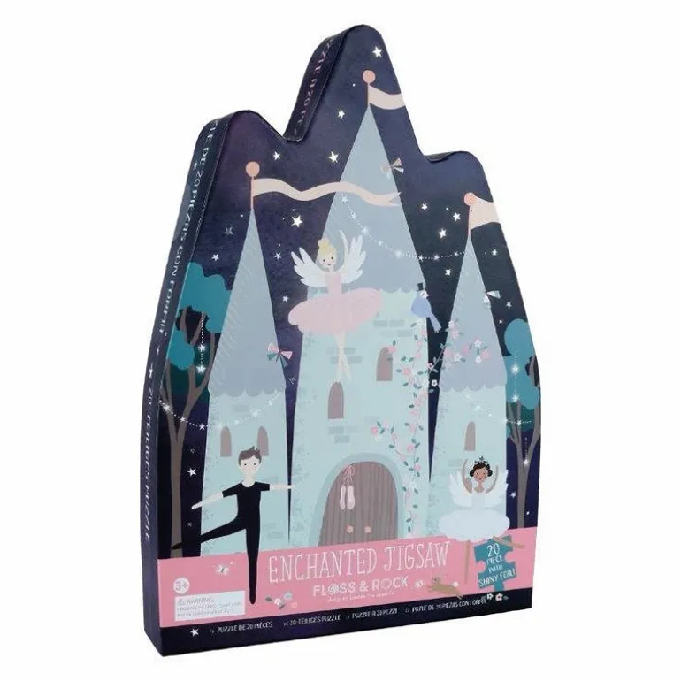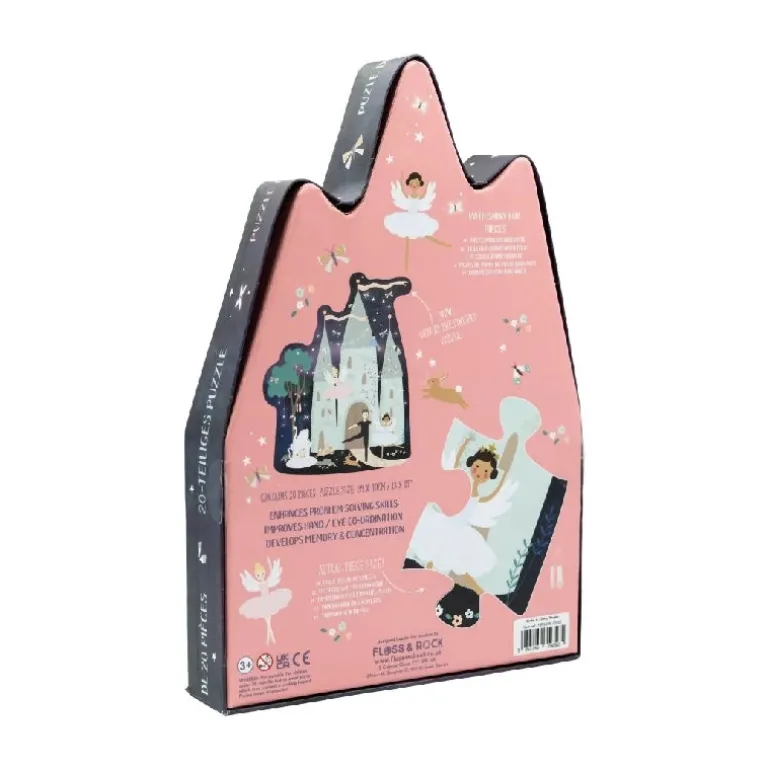 Puslespillet er formet som et flot eventyrligt slot, og det er den smukke gaveæske også. 20 brikker med flotte skinnende folierede detaljer.