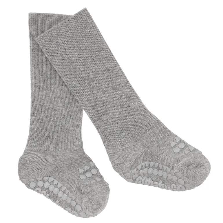 GoBabyGo skridsikre strømper i uld har special designede gummi dutter under fødderne og ovenpå tæerne, så barnet ikke glider når det skal i gang med at lære at kravle og gå.