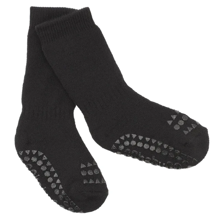 GoBabyGo skridsikre strømper i uld har special designede gummi dutter under fødderne og ovenpå tæerne, så barnet ikke glider når det skal i gang med at lære at kravle og gå.