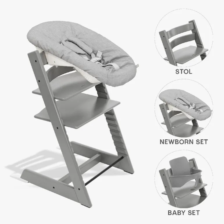 Selv den mindste i familien kan sidde med ved spisebordet med et Tripp Trapp® Baby Set², der følger med denne sampak. Det giver dit barn bevægelsesfrihed og hjælper det med at lære den vigtige færdighed at sidde. Når dit barn selv kan klatre op og ned fra stolen, kan du fjerne dit Baby Set. Det giver barnet større bevægelsesfrihed og mere selvstændighed.