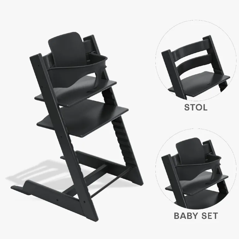 Selv den mindste i familien kan sidde med ved spisebordet med et Tripp Trapp® Baby Set², der følger med denne sampak. Det giver dit barn bevægelsesfrihed og hjælper det med at lære den vigtige færdighed at sidde. Når dit barn selv kan klatre op og ned fra stolen, kan du fjerne dit Baby Set. Det giver barnet større bevægelsesfrihed og mere selvstændighed.