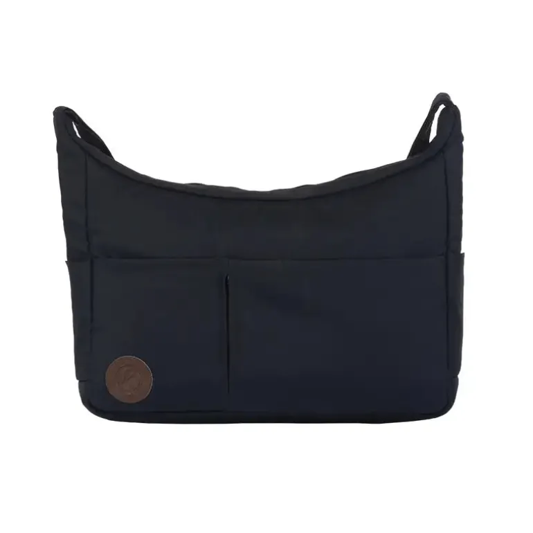 Samme tekstil som på barnevognen med flotte læderdetaljer og 5 ydre rum til opbevaring af småting