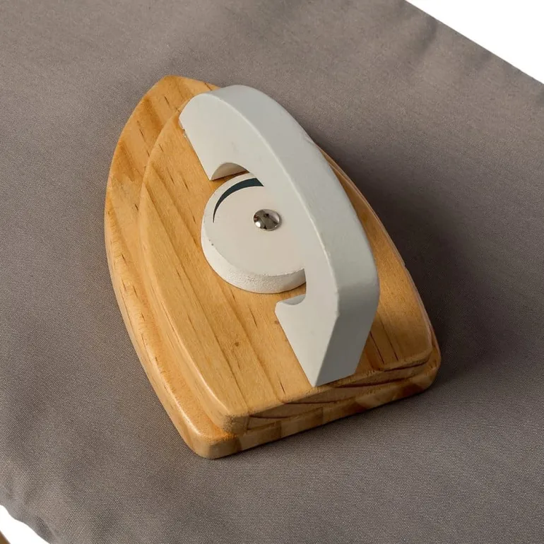 Strygebrættet har fint gråt stof på strygefladen, samt kan foldes sammen. Strygejernet har en drejeknap, neturligvis med “klik”lyd