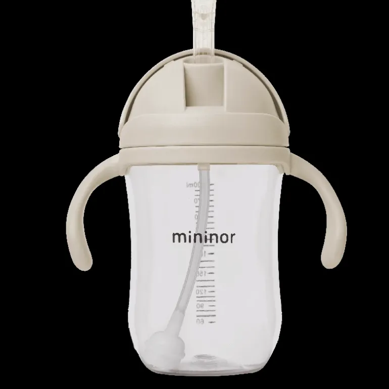 Mininor koppen har et smart låg, som kan skubbes frem og tilbage. Sugerøret er fleksibelt, og foldes sammen, når låget skubber over den. I låget er der også et lille lufthul, som sikrer, at der ikke skabes undertryk.