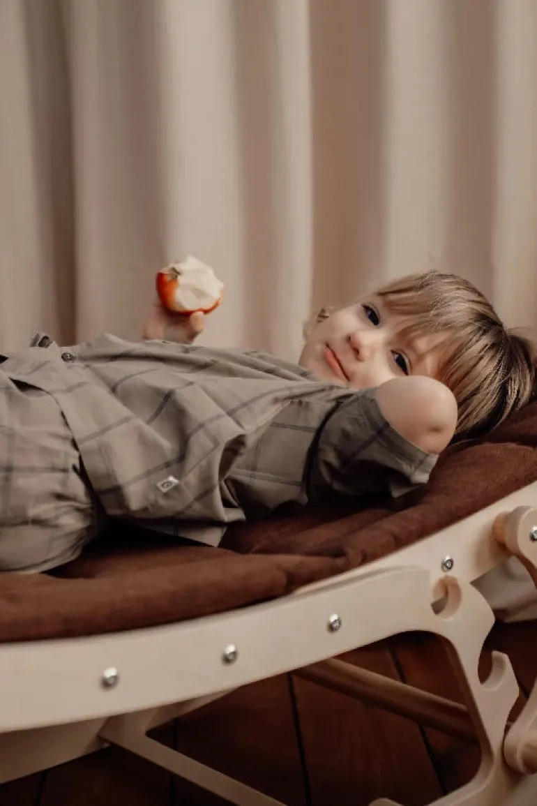 Skråstol: Susi Børnestolen fungerer som en traditionel baby skråstol, der beroliger og vugger din baby med blide bevægelser. Det justerbare ryglæn og det polstrede sæde med aftagelig babysele skaber en tryg og hyggelig oplevelse, der giver din baby ro og komfort.