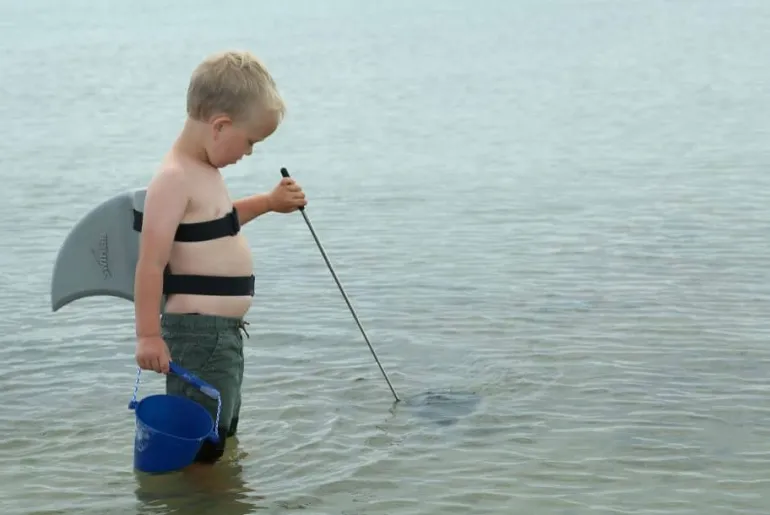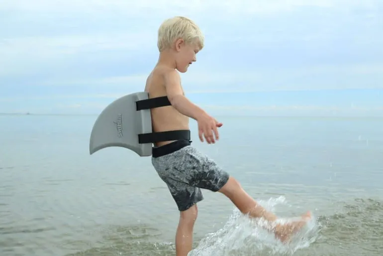 Finnen er udviklet af en engelsk svømmelærer, og de fleste børn synes den er sej at have på.