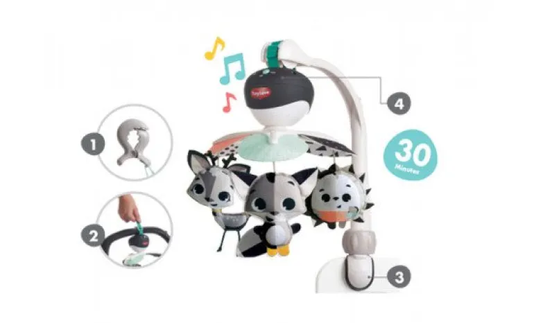 Tiny Love Take Along Mobile Magical Tales, er den perfekte stimulering. Det er 3-i-1-udviklings mobilens design bruger kontrasterende sort-hvide farver for at opmuntre barnets syn fra dag et.