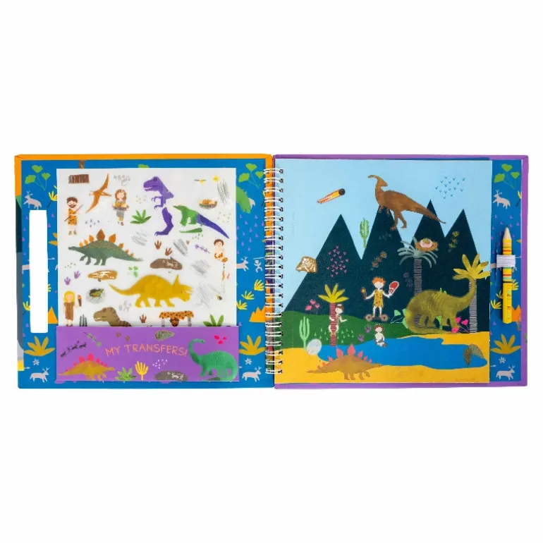 Der er så meget sjov at få med disse overførselsmærker! Denne Kreative aktivitet kommer med over 150 geniale overførsler med Dino-tema, 6 farverige scener til at placere dem på, 6 almindelige sider til freestyle doodling og en blyant. Åbn den spiralbundne bog for at finde alle dine overførsler pænt opbevaret i ‘Mine overførsler’-lommen, find din valgte illustration og bladre gennem siderne for at finde den perfekte scene at placere dem på. Rids over toppen af ??tegningen med den medfølgende Floss & Rock-blyant og løft arket op, ligesom magi vil du finde dem overført til siden. Brug mange glade timer på at sætte gang i kreativitet og lave smukke billeder med dinosaurer, hulemænd, vulkaner, fossiler og meget mere.