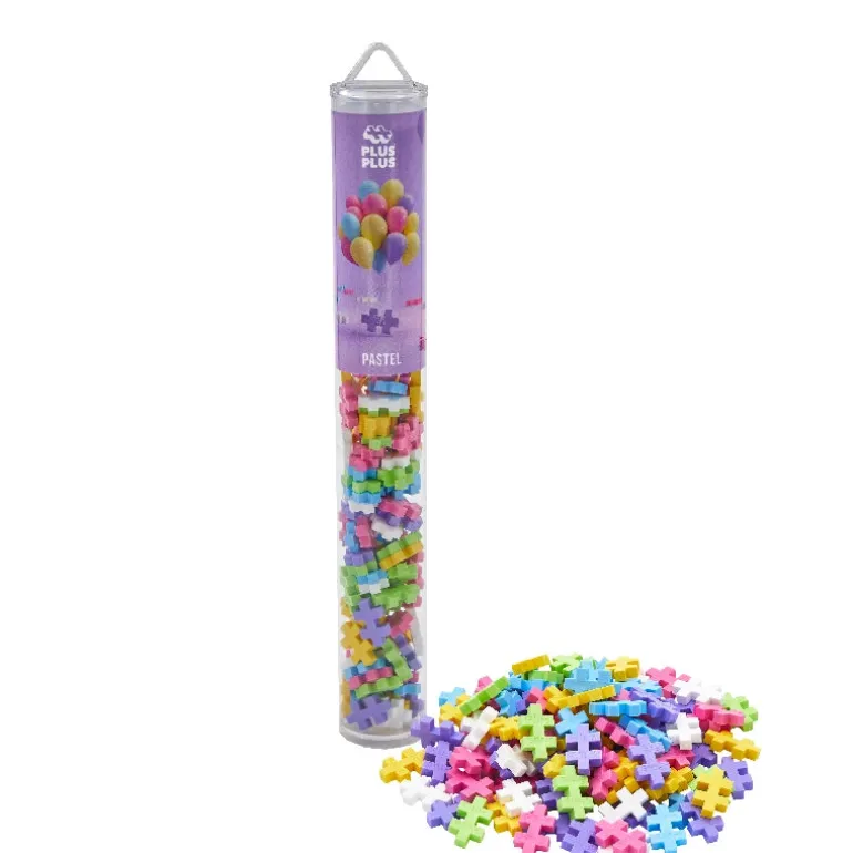 Dette Plus-Plus produkt indeholder 100 Plus-Plus brikker i blandede pastel farver i et genanvendeligt og rejsevenligt rør der gør det nemt at opbevare dine brikker og tage dem med på farten! Farverne består af pastel blå, grøn, lyserød, gul, lilla og hvid. Brug din fantasi og byg dine egne figurer! Produktet er naturligvis kompatibelt med alle andre Plus-Plus-produkter. Ikke egnet til børn under 3 år på grund af små dele.