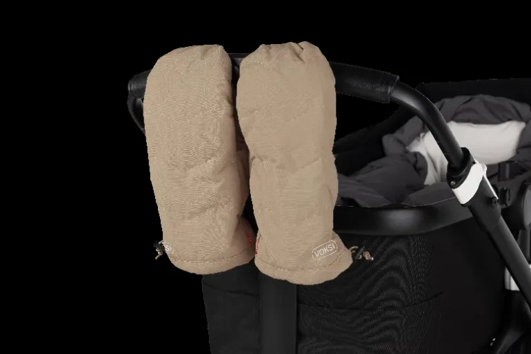 Lækre barne- og klapvognshandsker, der holder dine hænder varme og behagelige, når du ude at gå tur med vognen. Handskerne kommer i én størrelse, som passer til alle hænder. De er ideelle på de kolde, våde og blæsende dage. Hvis du tager hænderne ud af handskerne, vil de stadig sidde sikkert på vognstyret med velcro-funktionen.