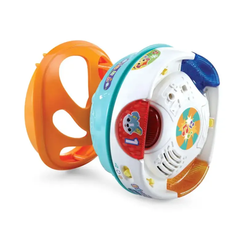 Din baby får det så sjovt med den nye Vtech 3-In-1 Magisk Bold DK. Der er 3 måder at lege på, og man kan nemt skifte mellem dem: Bold-, rulle- og trommetilstand. De blinkende lys fanger babys opmærksomhed og stimulerer den auditive bevidsthed, når bolden triller. Indeholder 3 interaktive knapper: farver, tal og dyr. Skift til rulletilstand, og se legetøjet rulle på tværs af rummet, hvilket motiverer baby til at begynde at kravle og sender det på farten. Trommetilstand introducerer baby for musik og lærer om årsag og virkning med spændende trommelyde. Indeholder 5 syng-med-sange, 12 melodier og sjove lyde og sætninger.