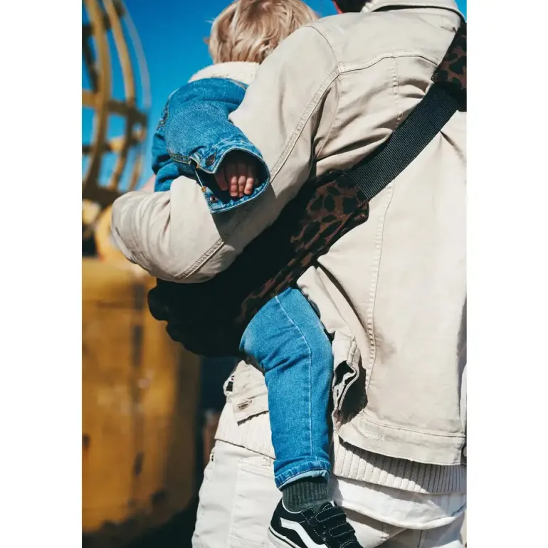 – Når den bruges korrekt, giver Carrieren et tyngdepunkt tæt ind til kroppen for at undgå rygsmerter. Barnet må aldrig side løst/dingle.
