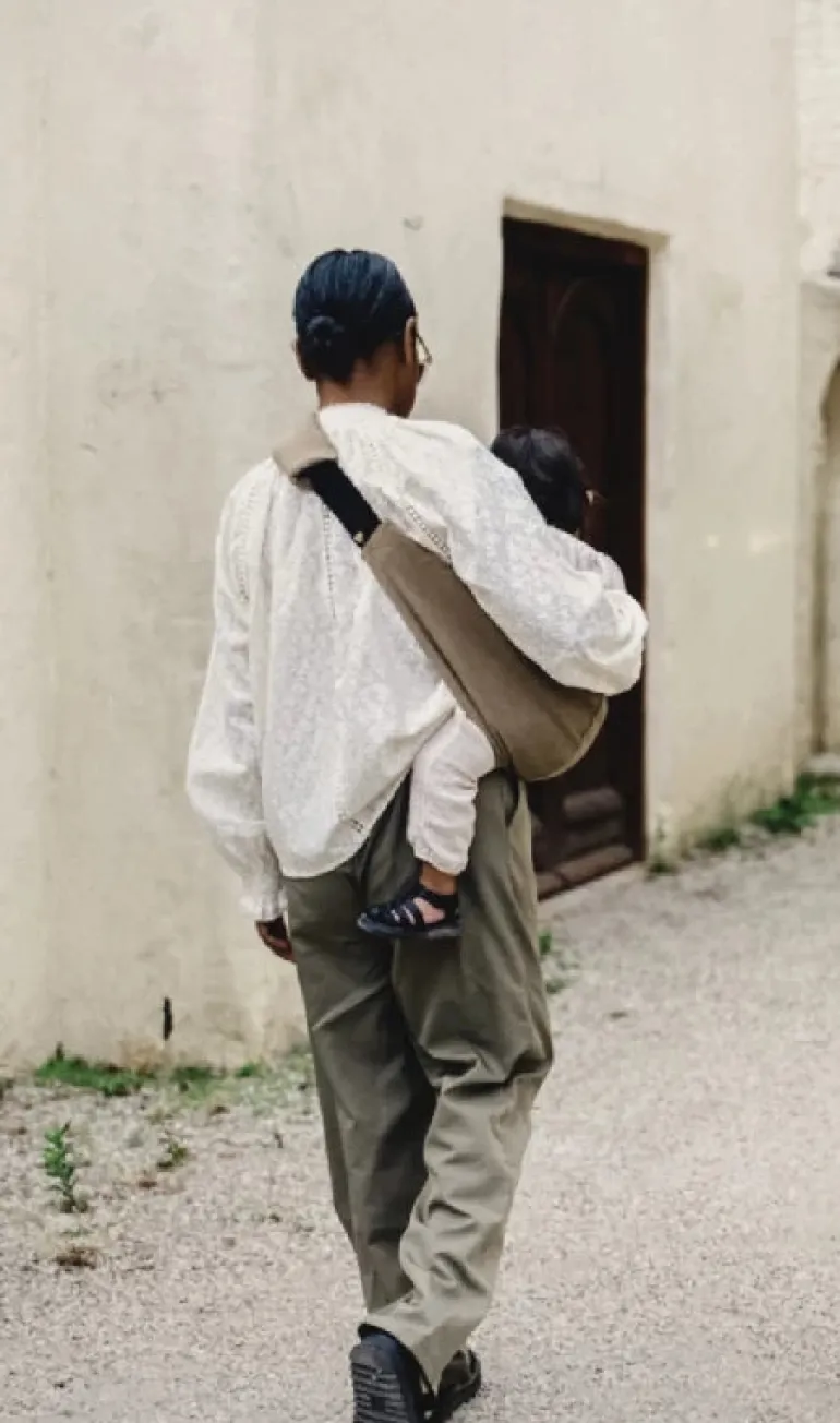 Når den bruges korrekt, giver Carrieren et tyngdepunkt tæt ind til kroppen for at undgå rygsmerter. Barnet må aldrig side løst/dingle.