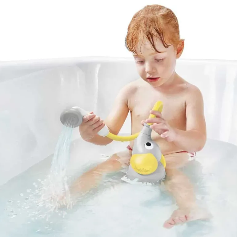 Yookidoo Elefant Bruser – Gul, dit barns egen batteri-drevet bruser. Den er super sød og sjov, bruseren trækker vand fra badekaret og skaber en endeløs strøm af vand. Bruseren er en charmerende elefant med en lang snabel. Tryk på den lille knap og elefanten begynder at trække vand fra badekaret. Elefant brugeren er en god størrelse så barnet også selv kan lege med den.