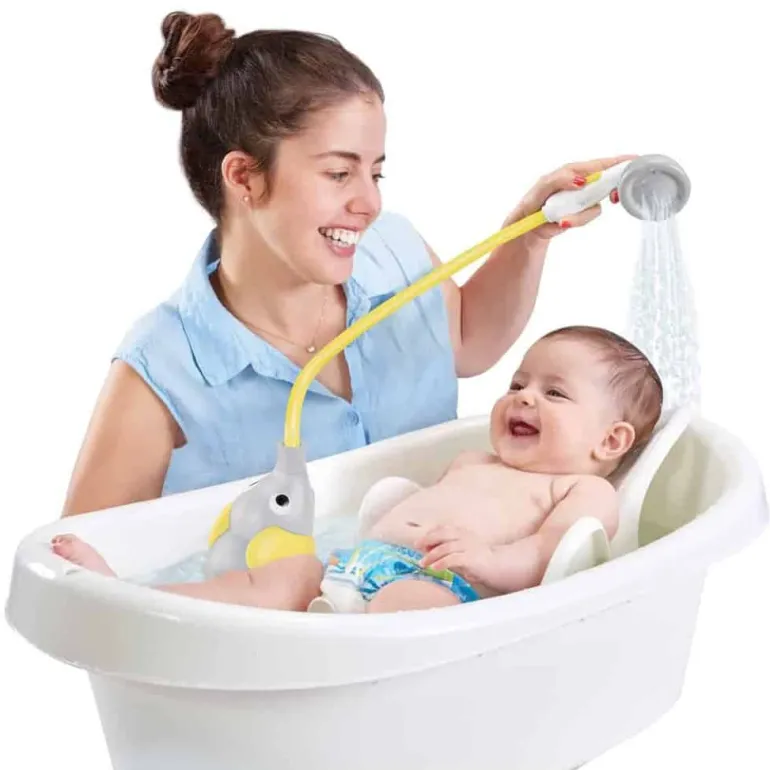 Sjov og lærerig legetøj for barnet og en effektiv lille bruser som forældrene kan bruge til at vaske barnet med.