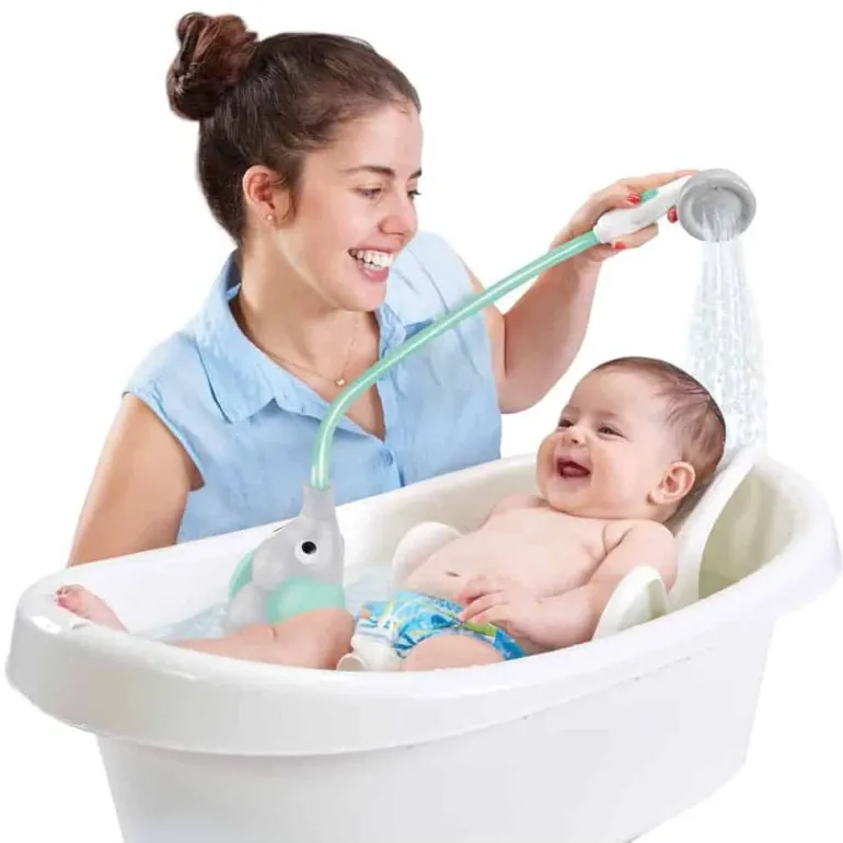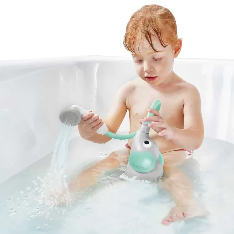 Sjov og lærerig legetøj for barnet og en effektiv lille bruser som forældrene kan bruge til at vaske barnet med.